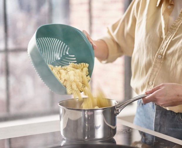 - Duo Triangular Colander svojim oblikom i dimenzijama omogućava ceđenje najrazličitijih namirnica.