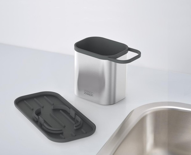 - Glavni deo Sink Tidy organizatora obezbeđuje dovoljno prostora za odlaganje deterdženta, dok sa strane postoji mesto za sundjer i četku za pranje flaša. Dno posude je mesto gde se skuplja višak vode i jednostavno se skida i pere.