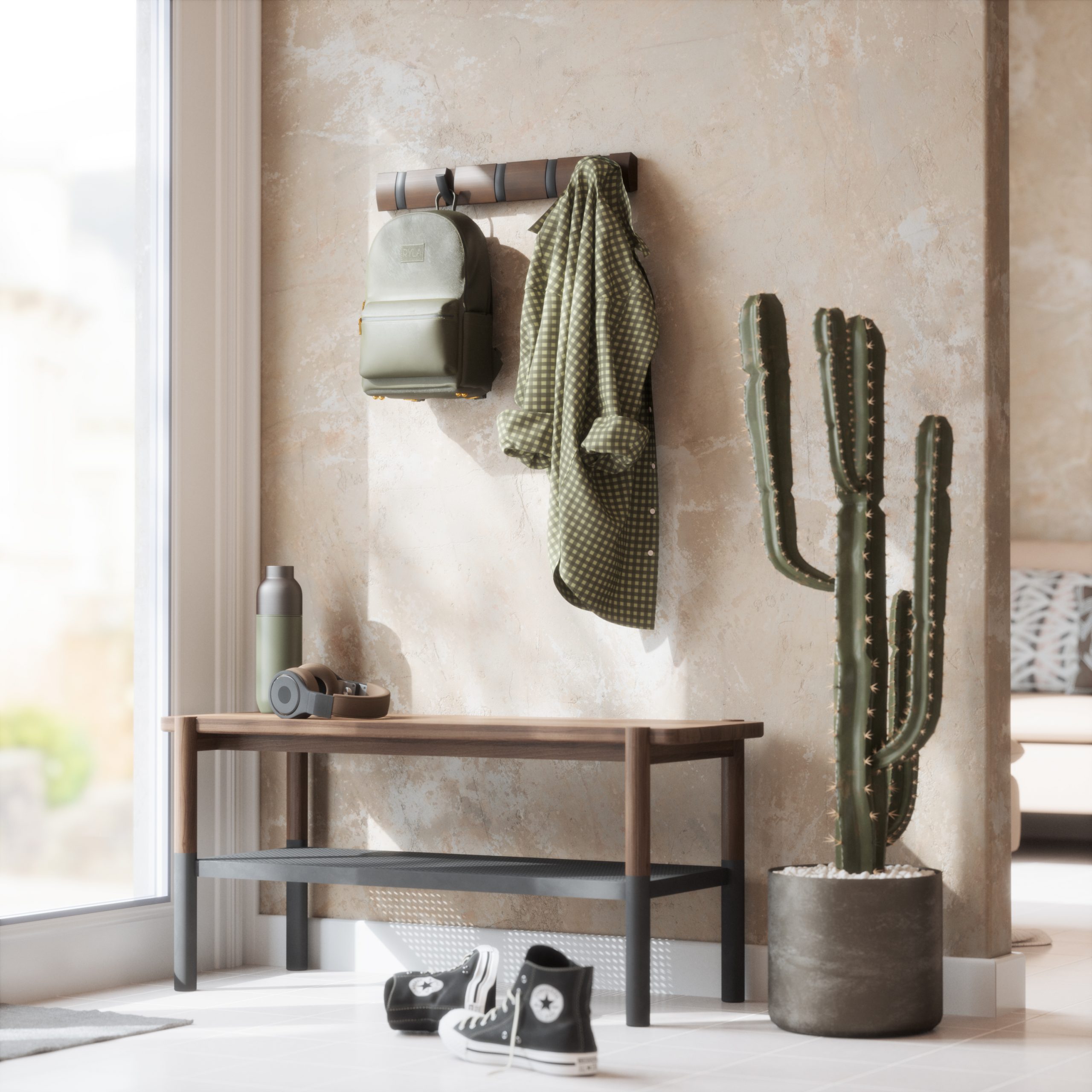 - Moderan dizajn koji štedi prostor: za razliku od tradicionalnih polica za kapute koje zauzimaju dragoceni podni prostor, FLIP 5 je rešenje za montiranje na zid koje je idealno za male životne prostore ili skučene ulaze zahvaljujući svom elegantnom, aerodinamičnom profilu i kukama koje se mogu uvlačiti kada se ne koriste